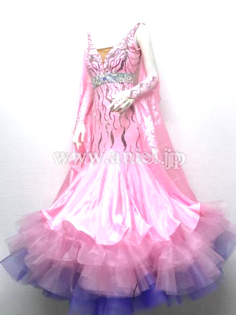 ベビーピンクとラベンダーのノースリーブドレス。