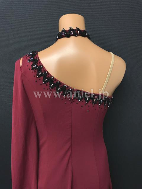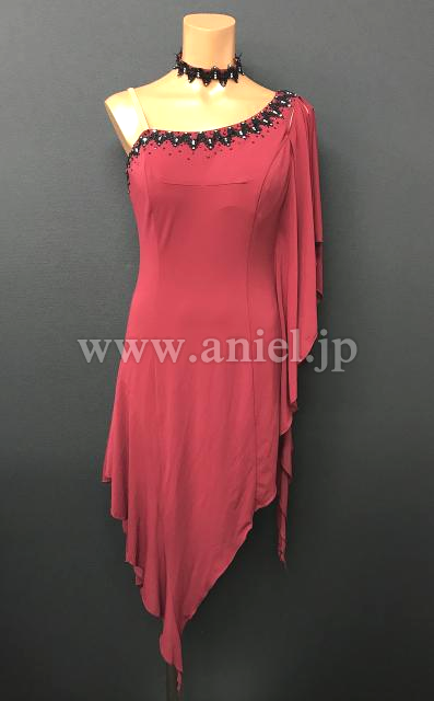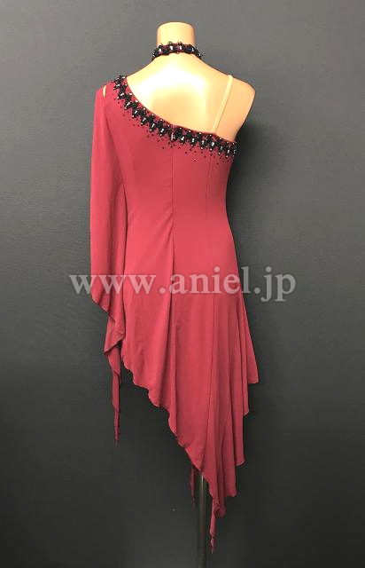 ワインレッドカラーがシックなルンバにもぴったりのドレスです。