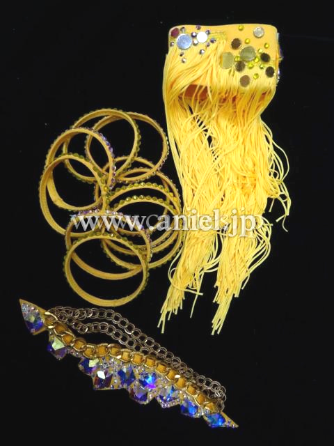 付属品はピアス、髪飾り、フリンジ付きバングル1、細いバングル10個です。