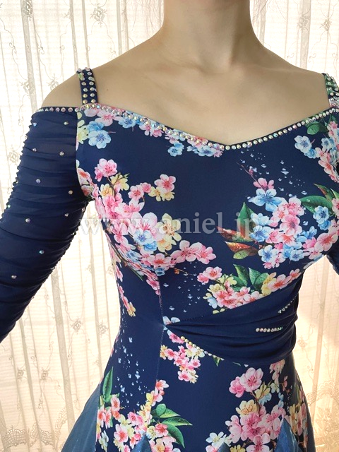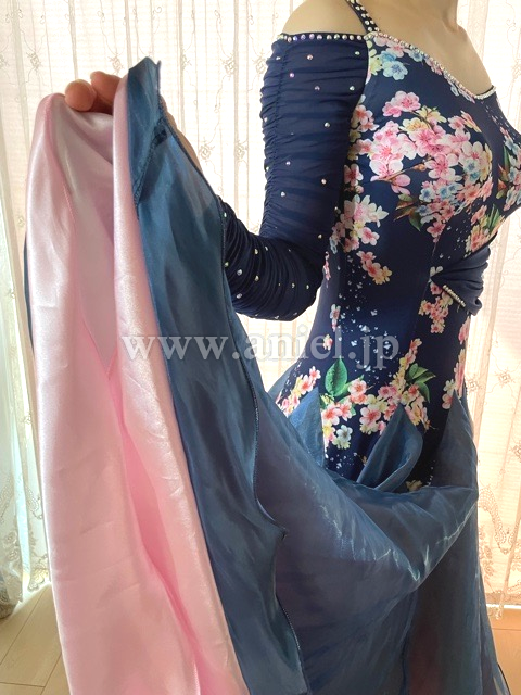 未使用 袖のシャーリング ピンクとブルーの花柄 がおしゃれ