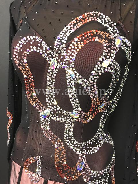 スワロフスキーが混ぜられたストーンの模様が美しいドレスです。