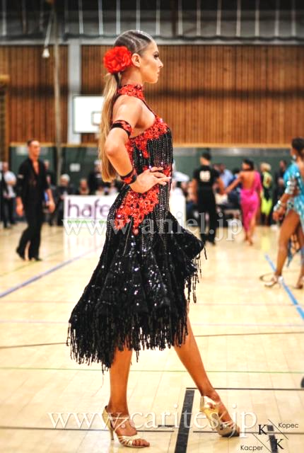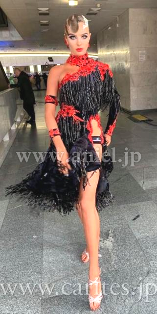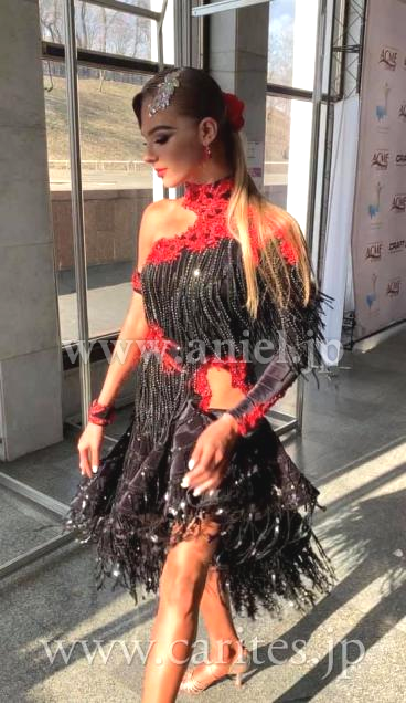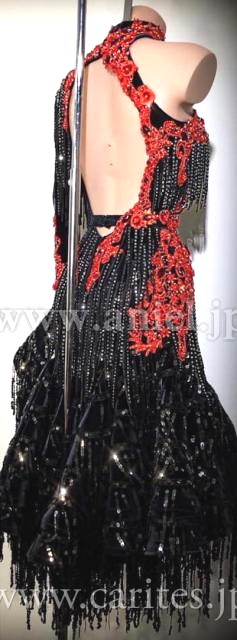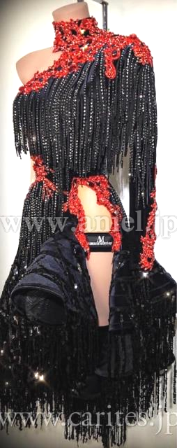 ボディ、スカートにスパンコールフリンジと布フリンジをたっぷりと使用しています。