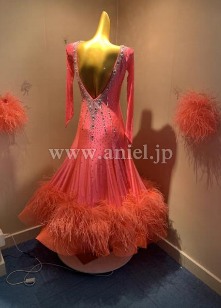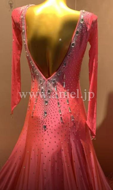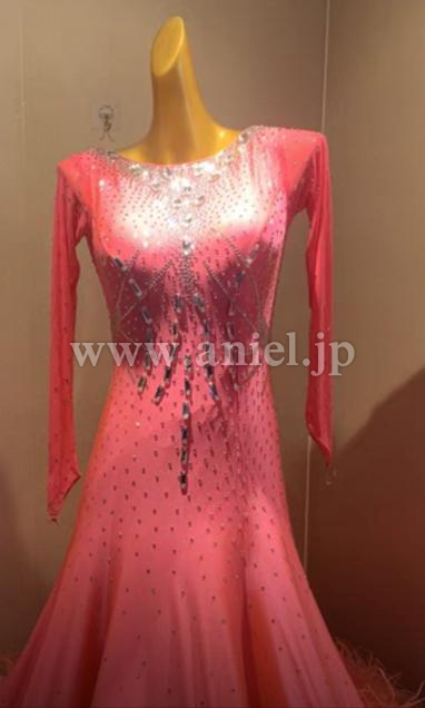 明るいピンクオレンジのフレッシュなドレスです。