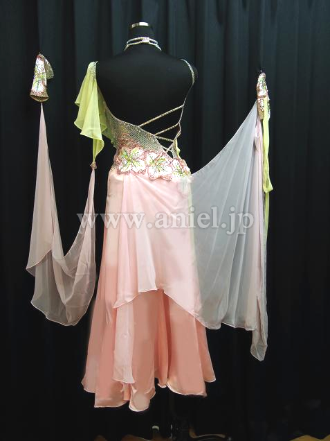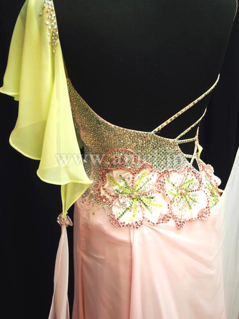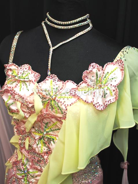 edda hsuならではの、細かいところまでとても可愛いドレスですが、実際に着用するとナナメに入ったレモンイエローのジョーゼットのドレープが優雅な雰囲気も出してくれます。