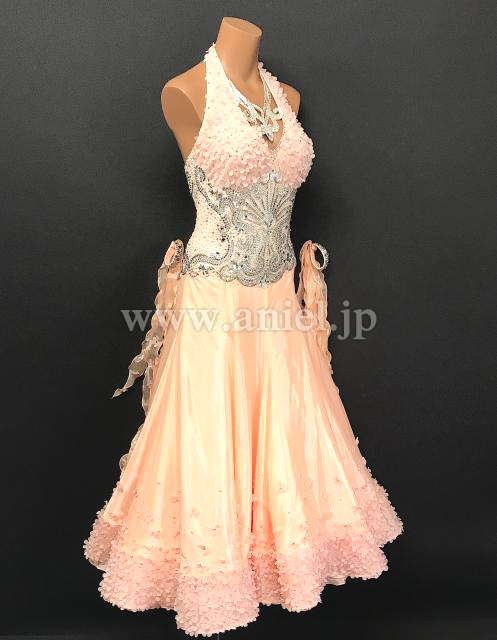キュートなベージュピンクカラーのドレスです。