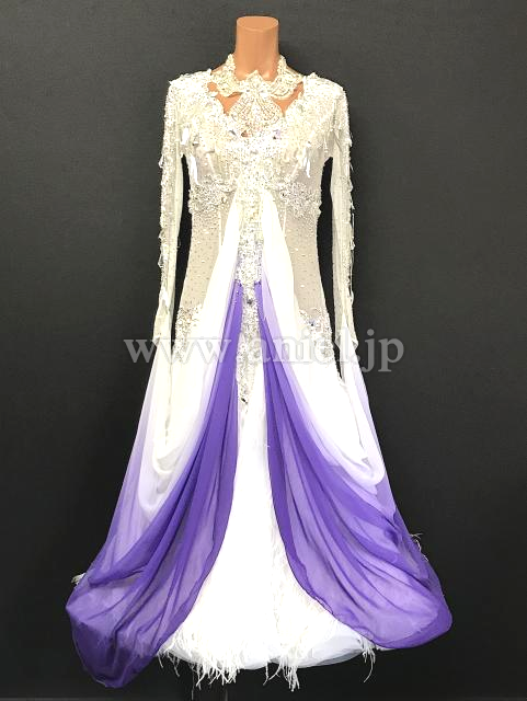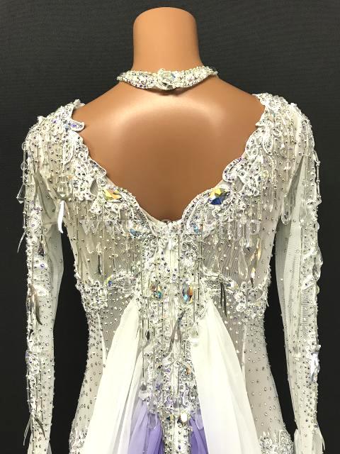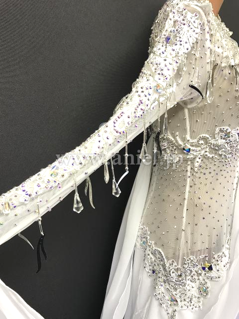 美しい真っ白のボディにビーズフリンジや大粒ビーズが装飾されています。