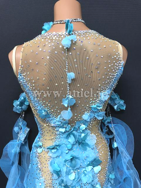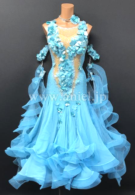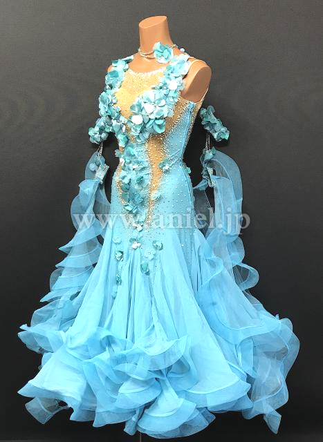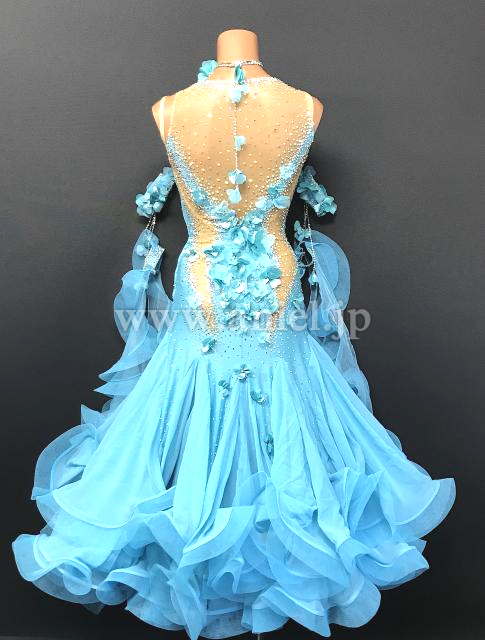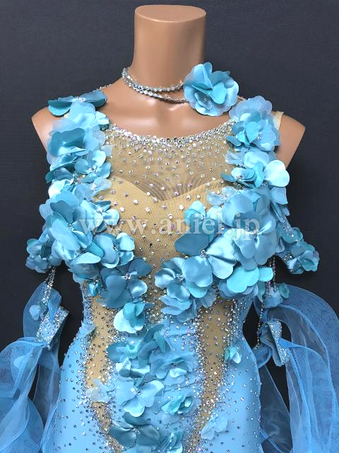 立体小花モチーフが華やかにボディを彩るドレスです。