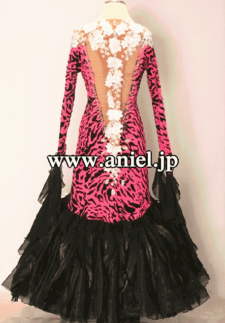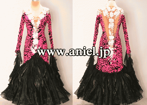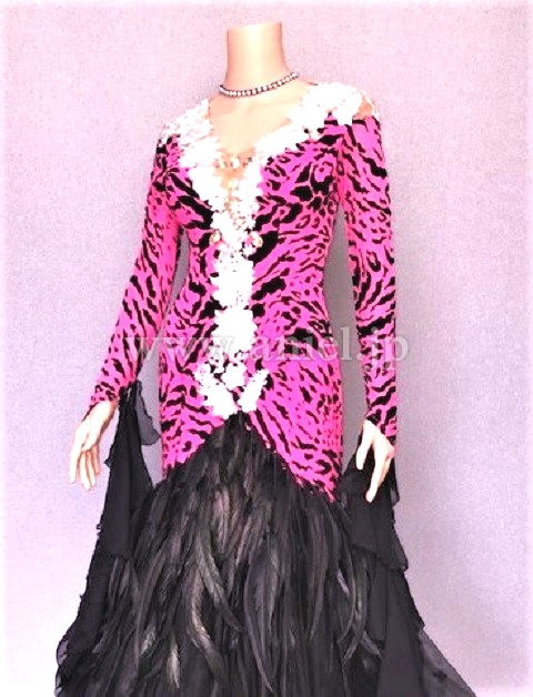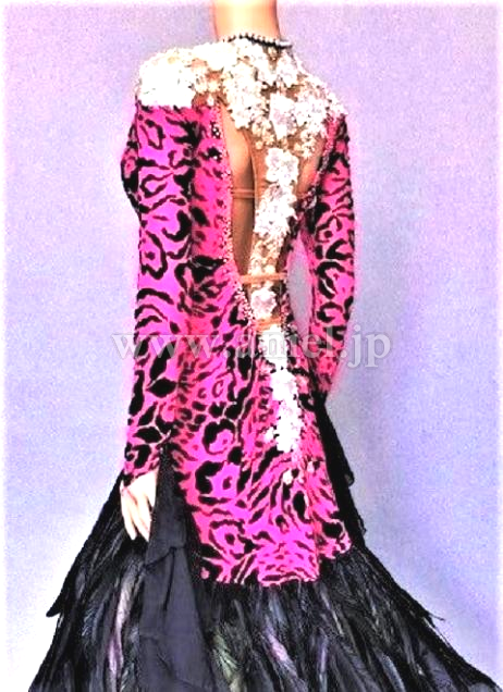 ピンクレオパードに黒羽根、とてもインパクトのあるドレスです。