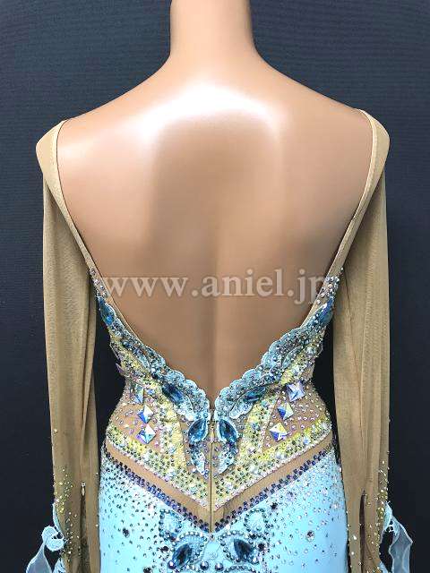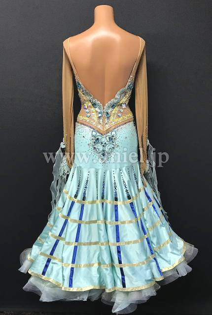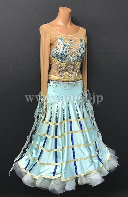 ストライプの格子柄がリボンでつけられたスカートが個性的で可愛らしいデザイン。