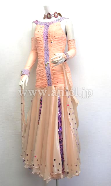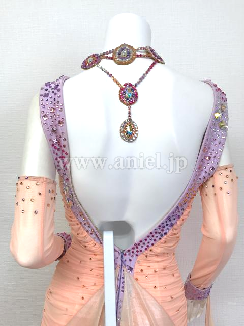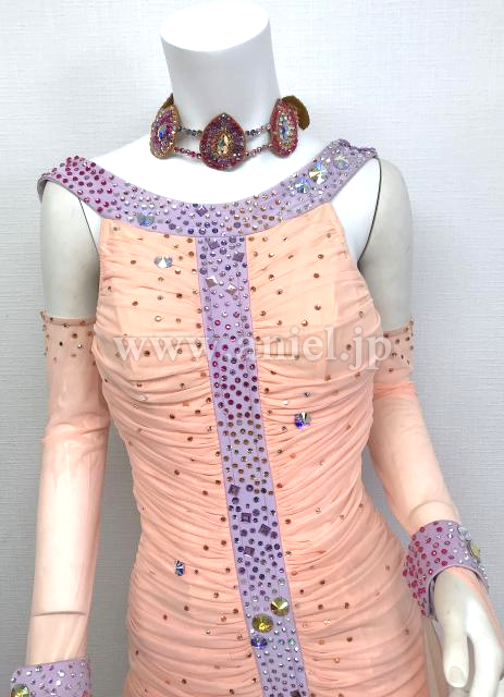 アプリコットとラベンダーのノースリーブドレス