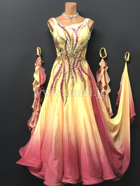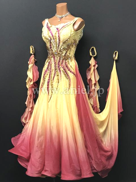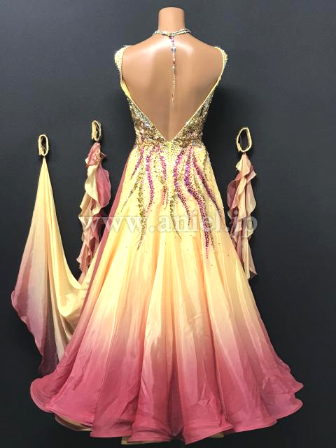 サテンのグラデーション生地がとても美しいドレスです。