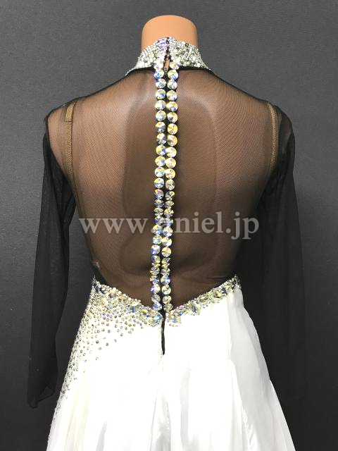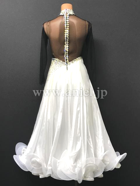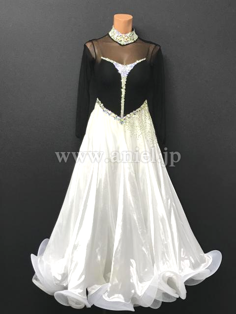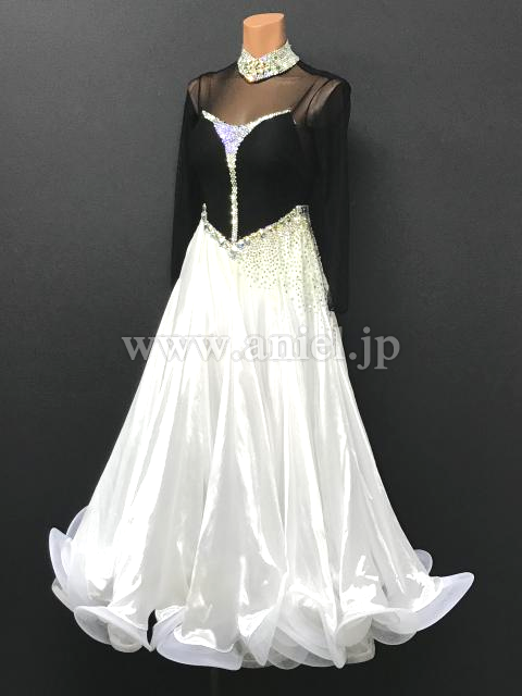 黒のボディにウエストから広がるスカートが対照的なドレスです。