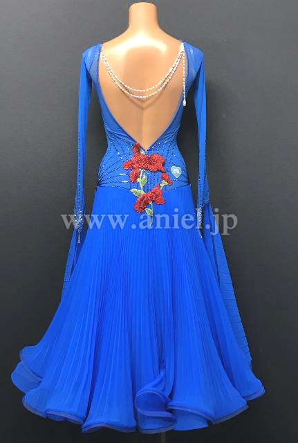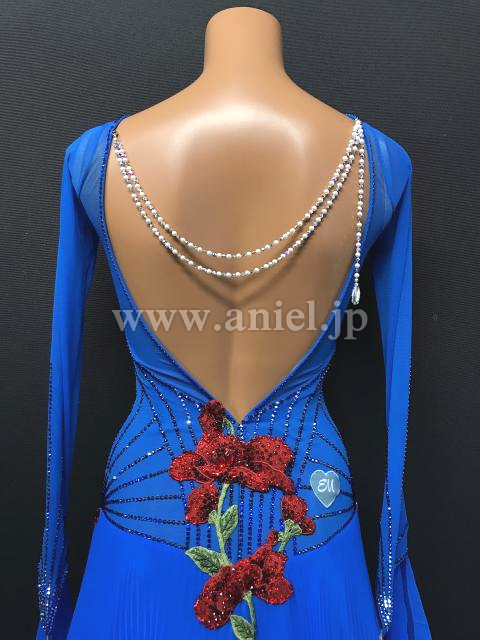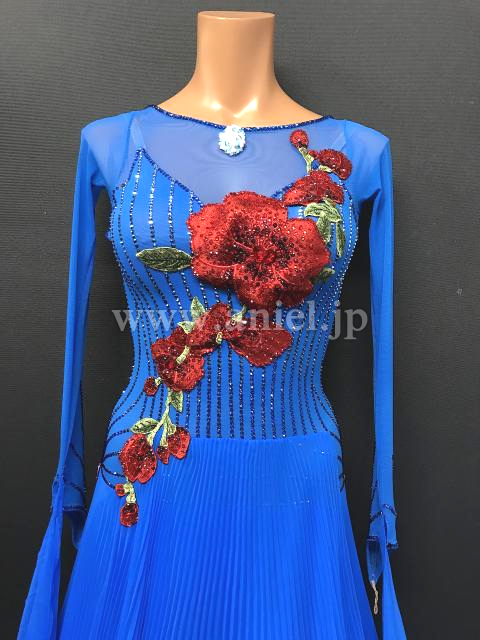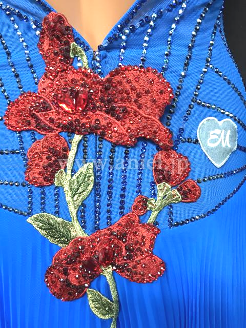 美しいブルーに繊細な装飾の赤いお花モチーフが映えるデザイン。