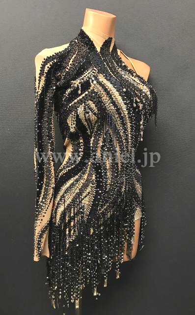 黒やオーラム(ゴールド)のストーンがびっしりと装飾されています。