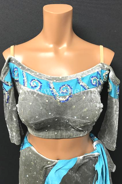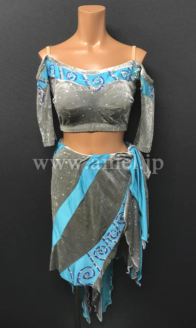 ストーンで模様が描かれた水色のラインが特徴的。