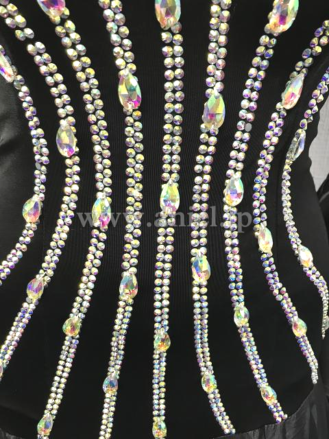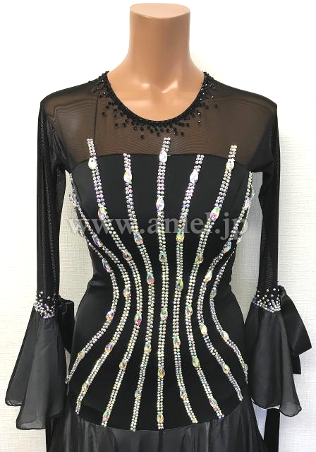 シンプルなデザインにストーンのラインが映えるドレスです。
