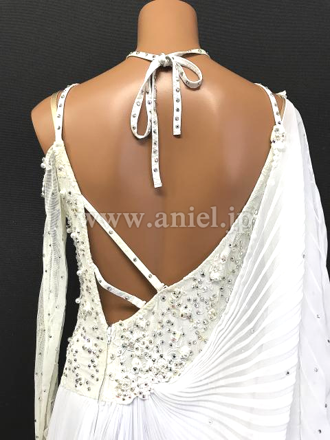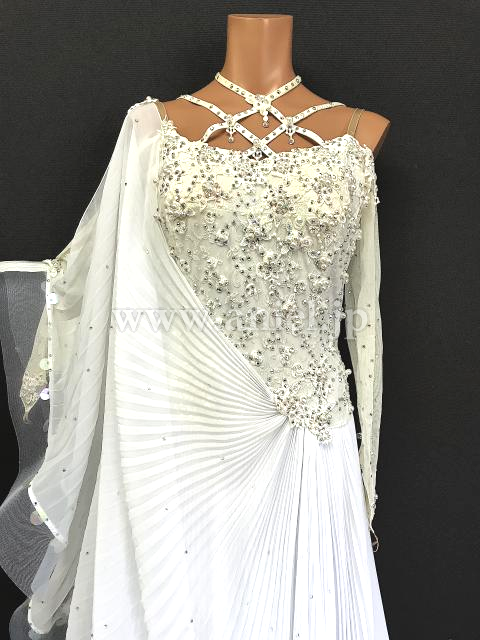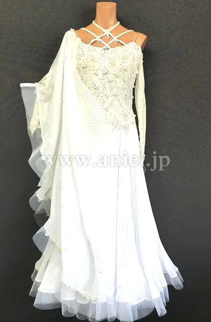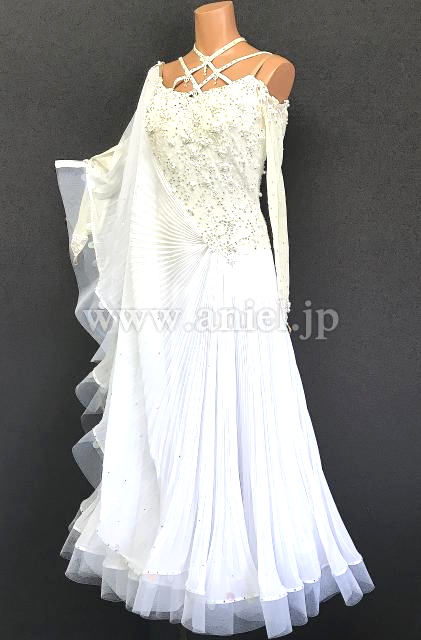 ボディから広がるプリーツ生地の大きなフロート、スカートがエレガントです。