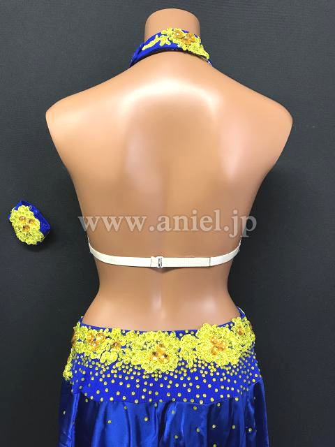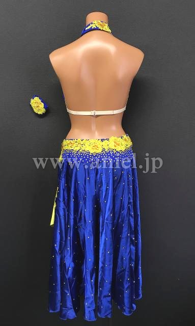 スカートは左にスリットがいれられ黄色のフリルが縁取られています。