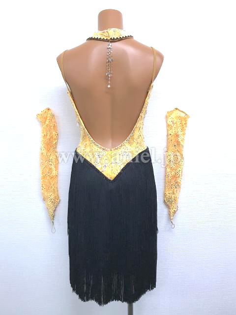 レースのボディに黒フリンジのスカートが動きを出してくれるドレスです。