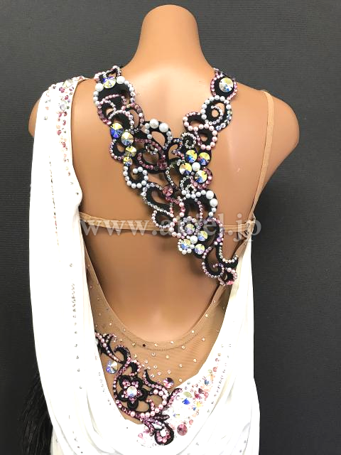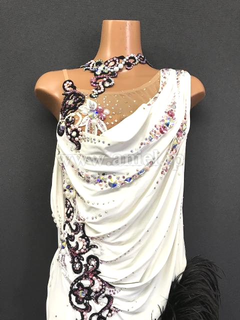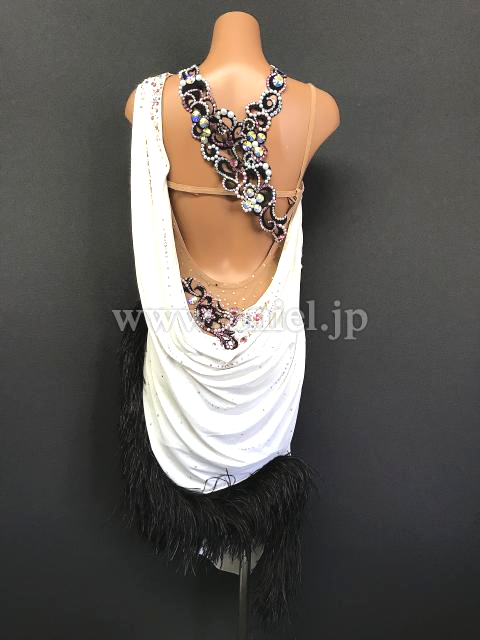 白のドレープにモチーフレース、ファーの装飾が華やかなドレスです。