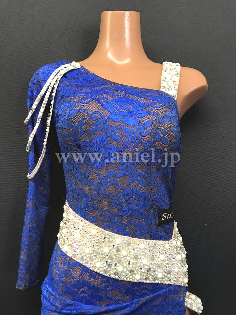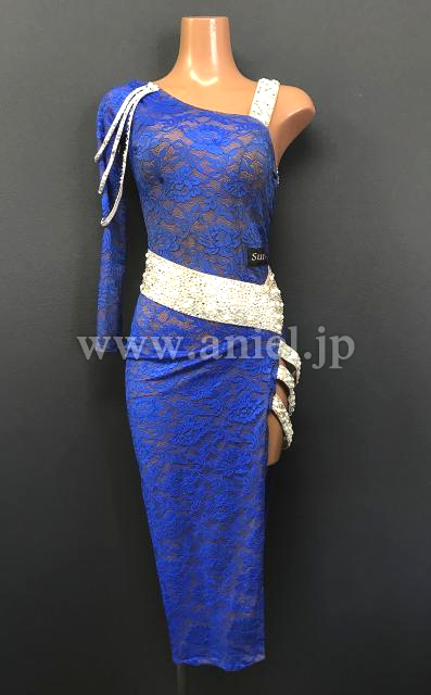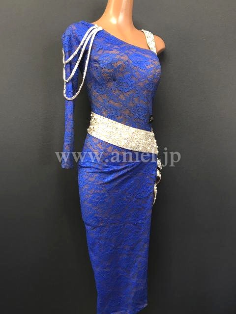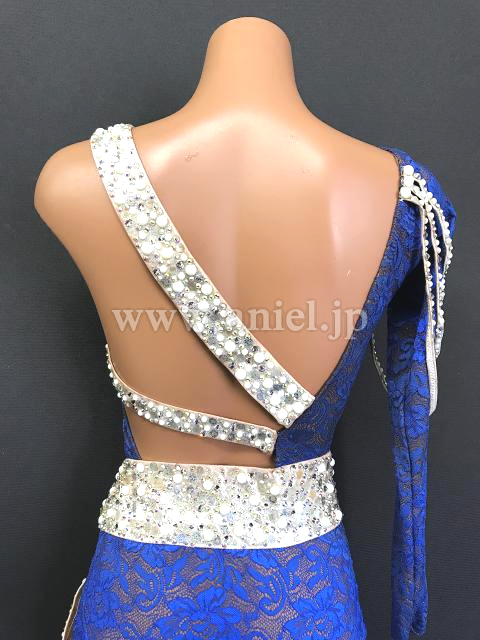 レースのボディにホワイトのベルトや飾りが華やかなドレスです。