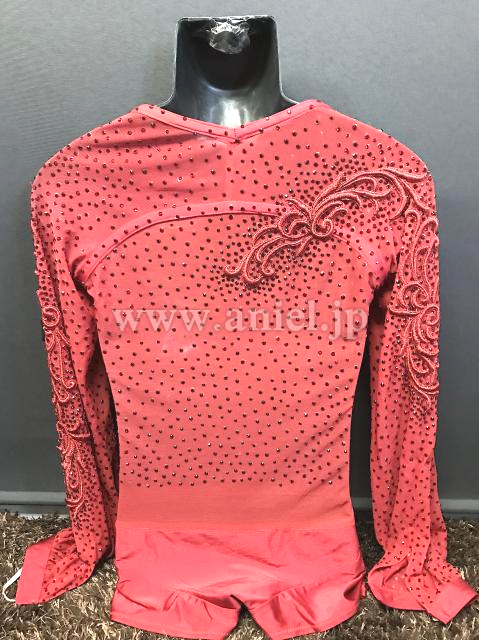 赤のレースがおしゃれなラテンシャツ。