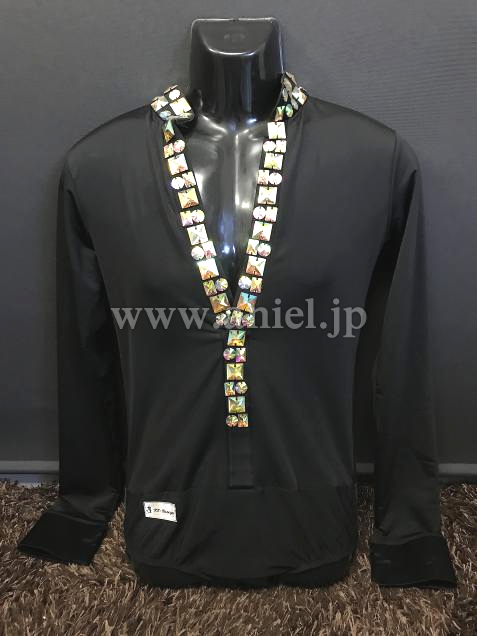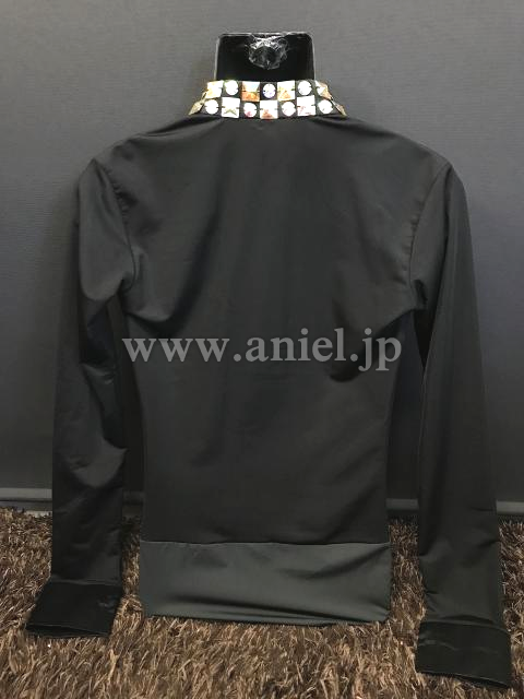 L6189・黒ストーンラテンシャツ※試着不可