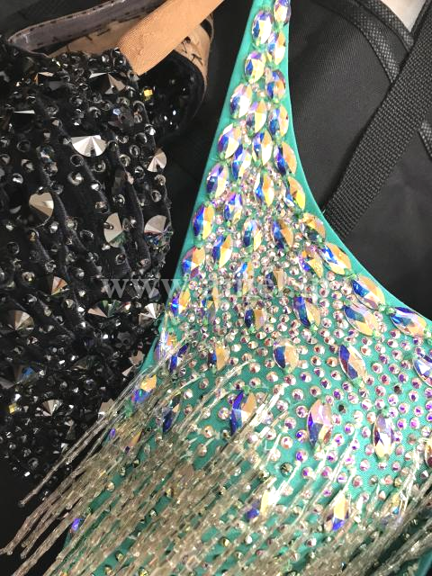 石使いやビーズフリンジ使いがゴージャスで華やかなドレスです。