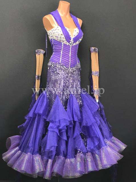 マーメイドラインから広がるスカートがボリュームたっぷりでエレガント。