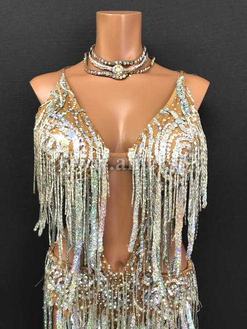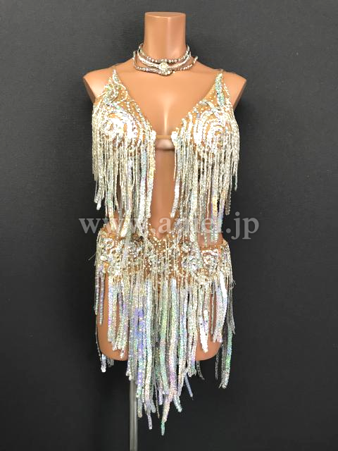 ボディはスパンコールのラインとスワロフスキーストーンが飾られています。