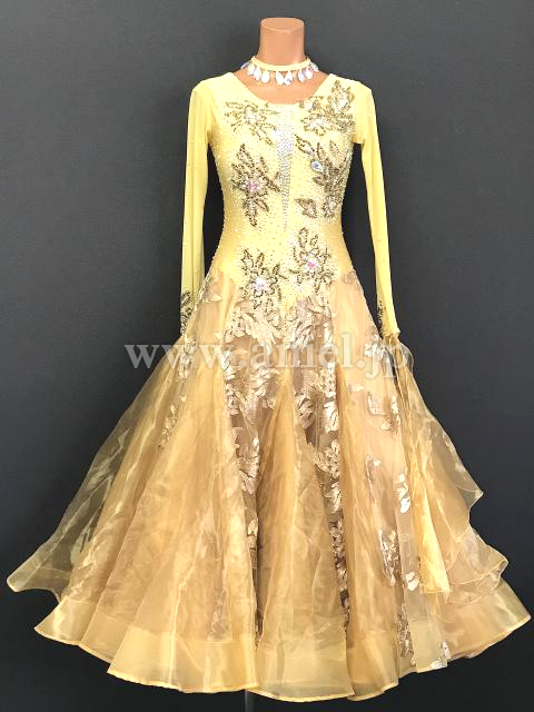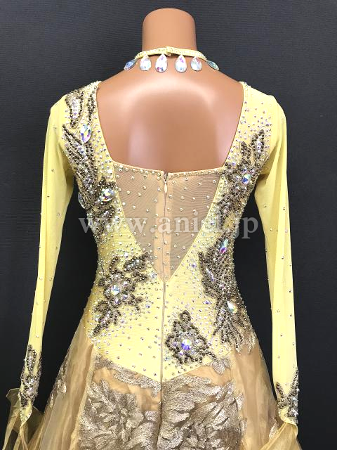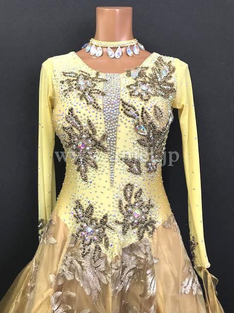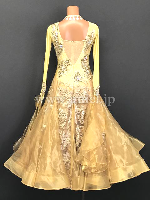 華やかなゴールドカラーのドレスです。