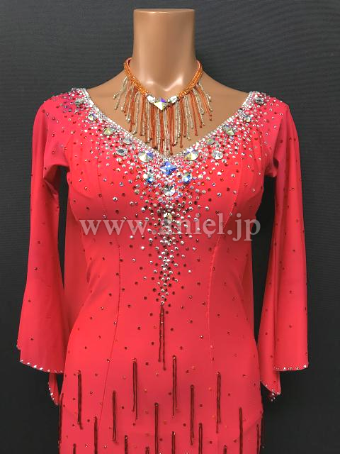 ボディは大小のスワロフスキーストーンとビーズフリンジで装飾されています。