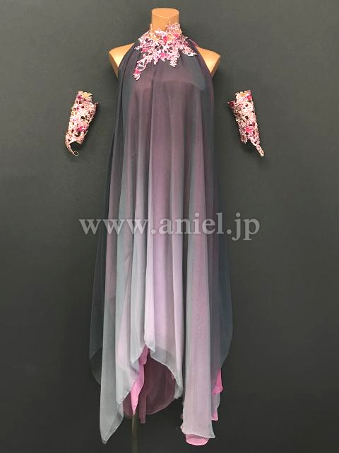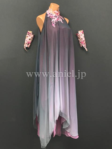 グレーとピンクの透け感のある生地が重ねられ独特のニュアンスを醸し出します。