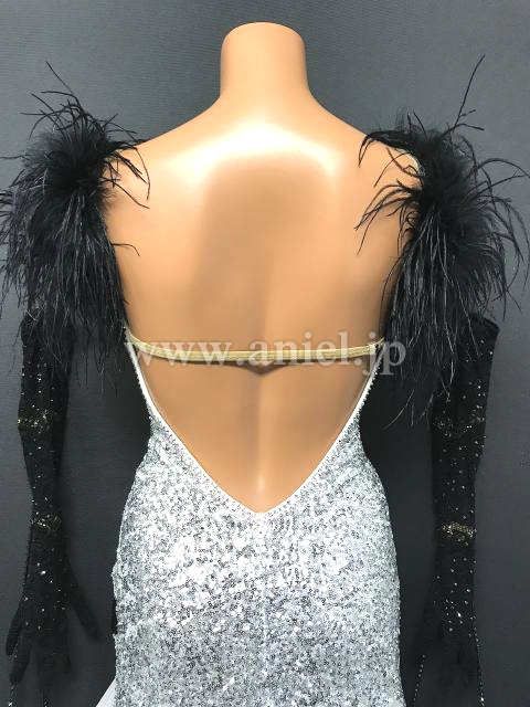 シルバースパンコールのボディが目立つドレスです。