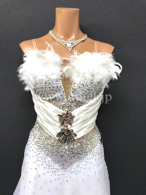 羽根がバスト部分にボリュームよくデザインされています。
