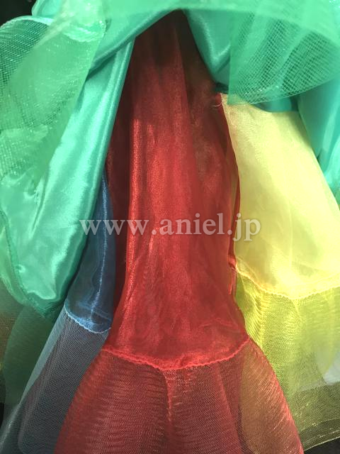 インナースカートには黄色、水色、赤が混ぜられて個性的。