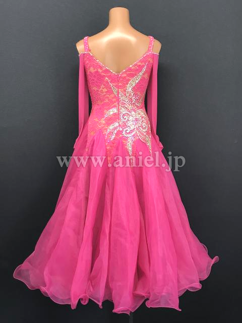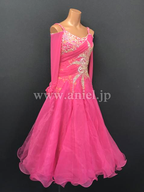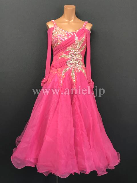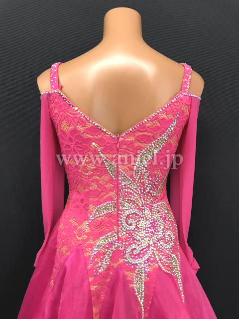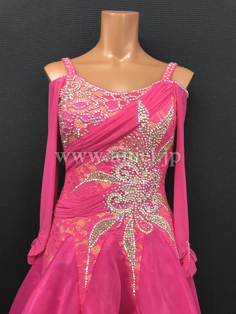 鮮やかなピンクのドレス。