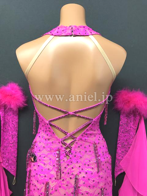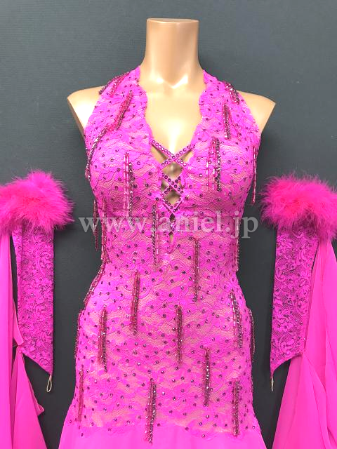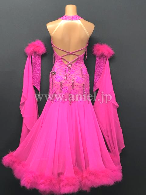 流行りの羽根が裾につけられたドレスです。