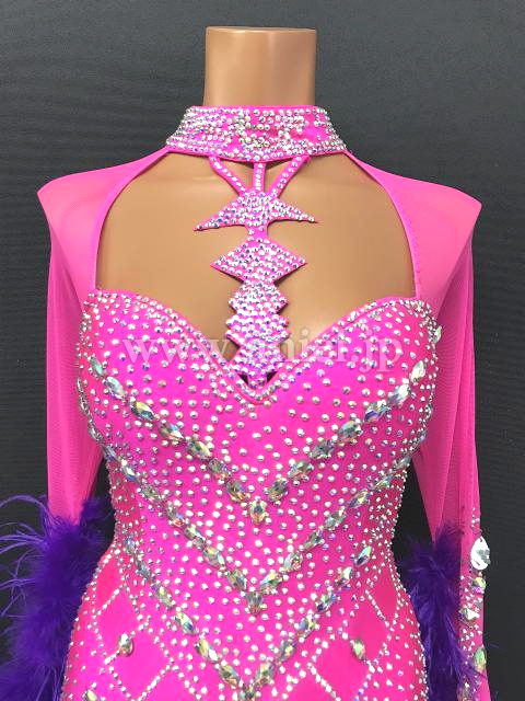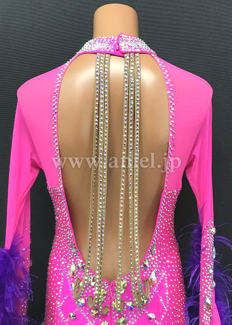 ピンクに紫の羽根が華やか。