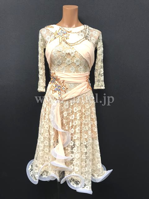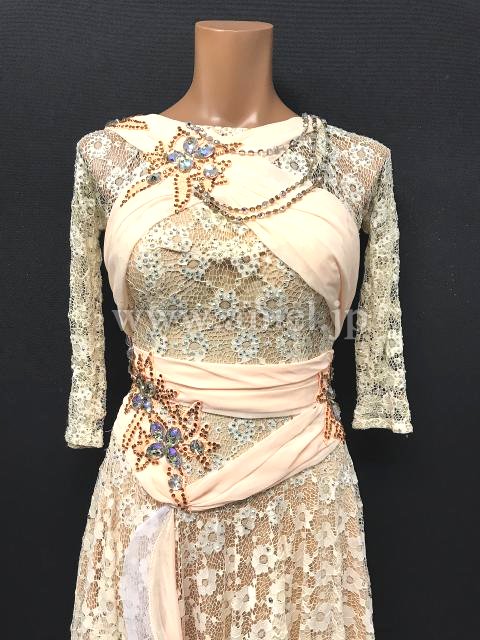 全体にレース生地が使われたエレガントなラテンドレスです。
