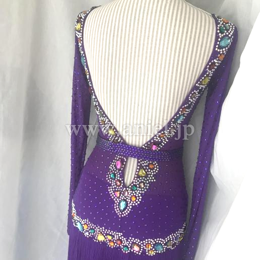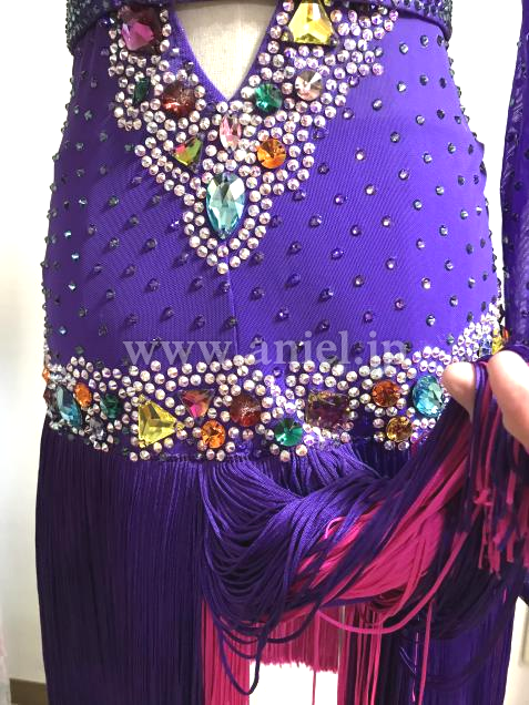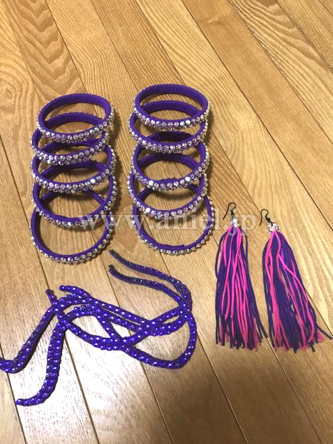 スカート部分はフリンジがたっぷりで高級感があります。表側紫、内側ピンクで個性的です。