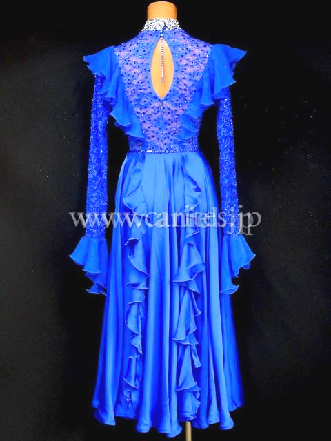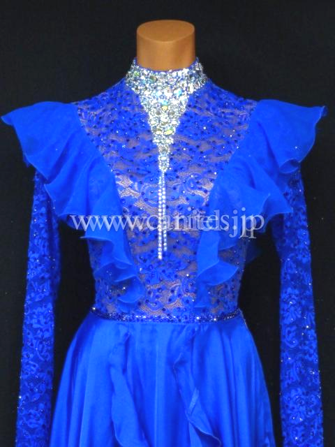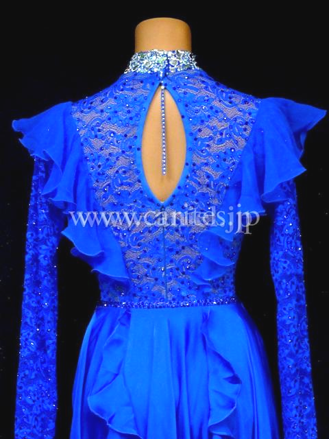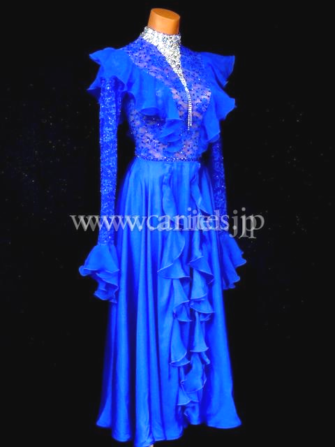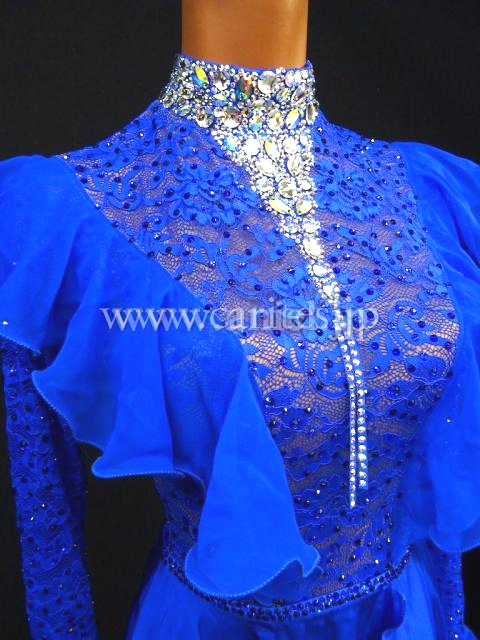 袖、スカート、胸元に女性らしくフリルをデザインしています。