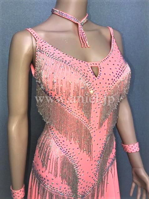 ドレス全体にに配した、リッチ感たっぷりのシルバービーズフリンジが良く踊ります。