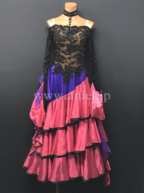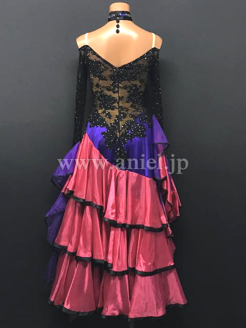 三段ティアードのサテンスカートは光沢があり綺麗に踊ります。