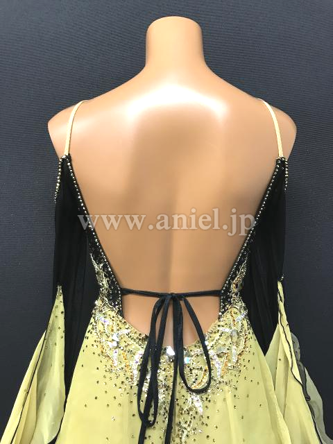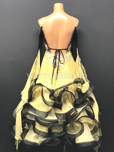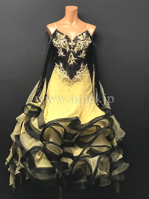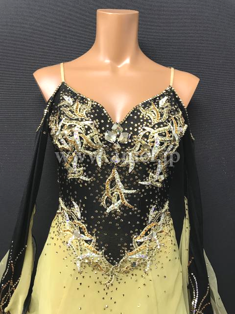 黒のボディにゴールドの装飾が映えるドレスです。