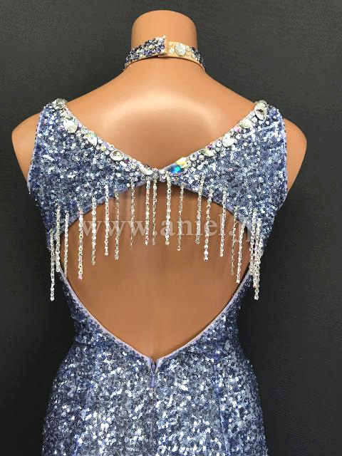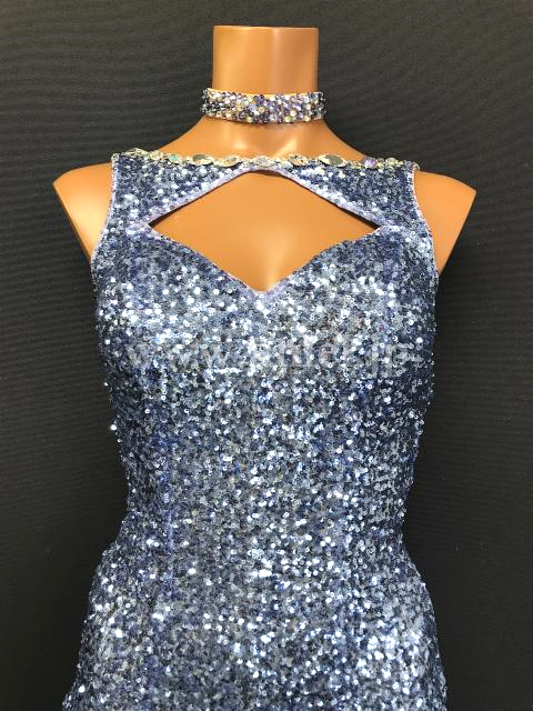 スパンコール生地がキラキラと輝く華やかなドレス。
