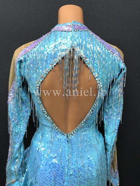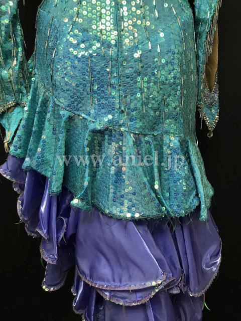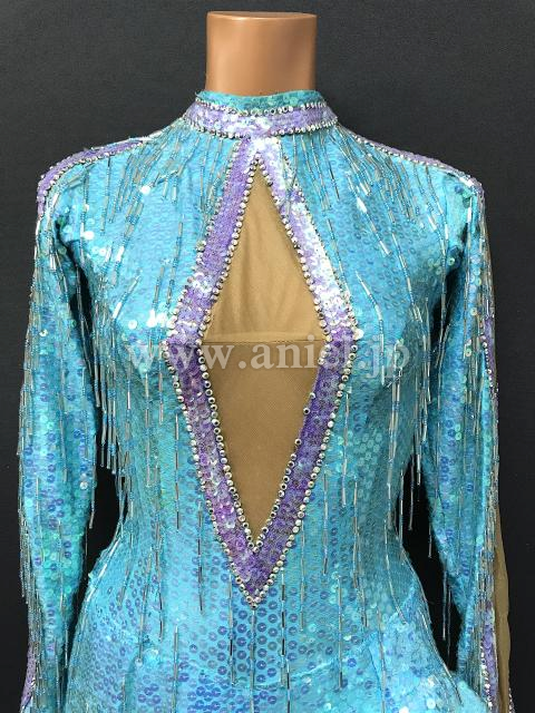 水色スパンコール生地がキラキラと光りとても目立ちます。