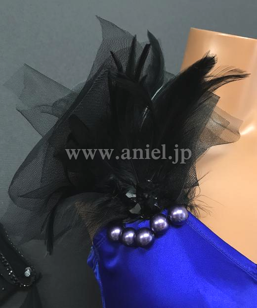 肩には羽根とチュールで立体的な装飾が施されています。