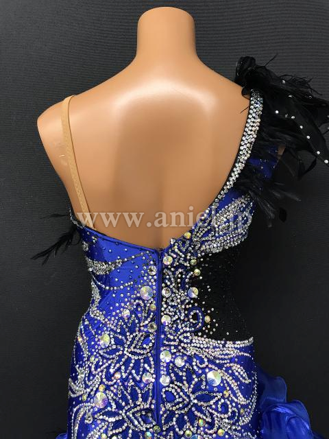 肩の立体的な装飾が見る人の視線を上げて背を高く見せてくれます。