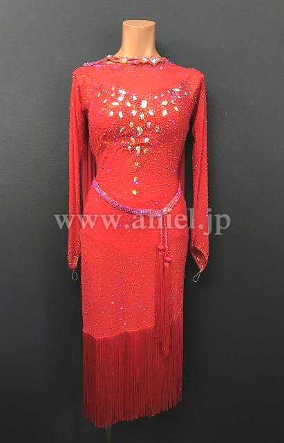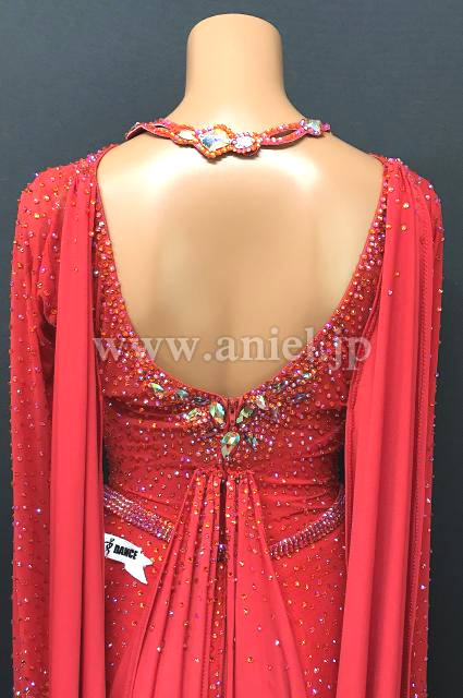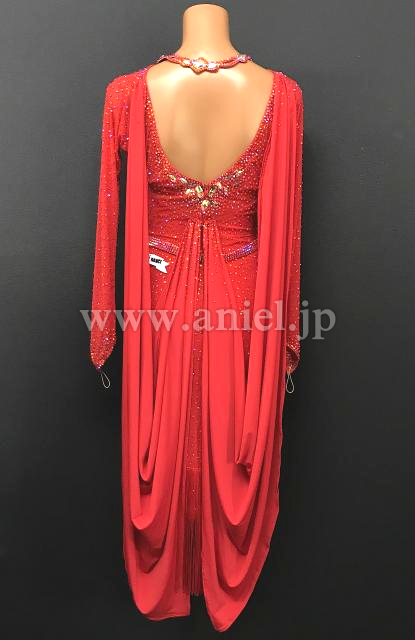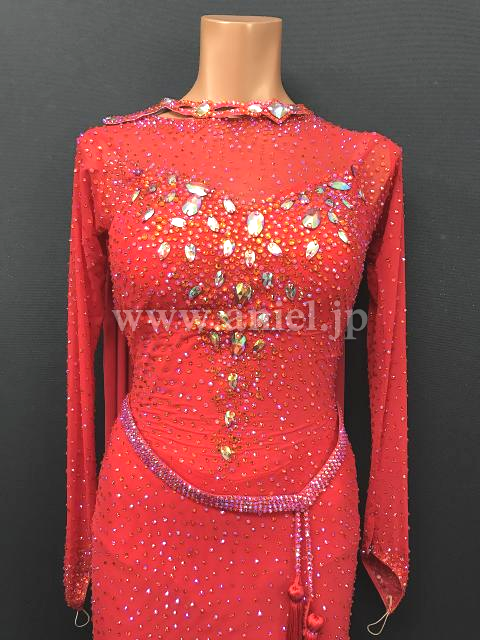 赤のボディにストーンがゴージャスに飾られた華やかなドレスです。